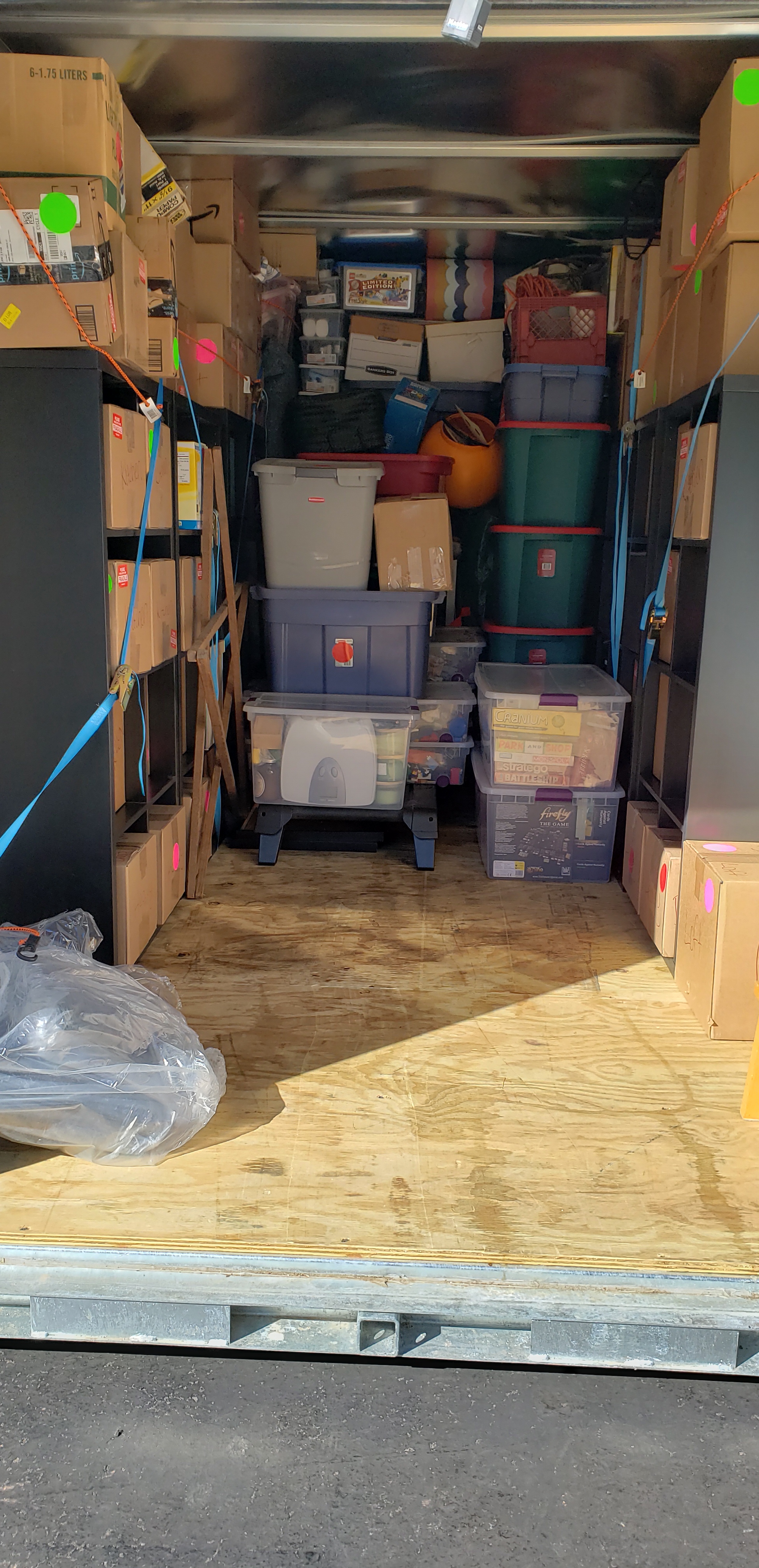 Furniture, holiday storage containers, and other larger items went into our front living room.