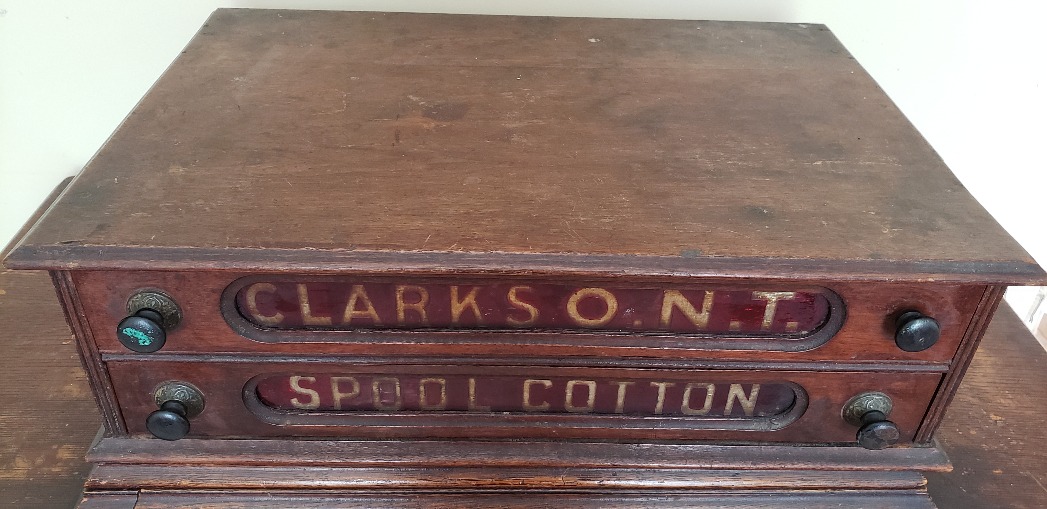 I now know interesting things about Clark Thread Company, like they created a new way to spin cotton into thread when silk stopped coming into Scotland from France because of Napoleon. They called this ‘our new thread’ and the O.N.T (as seen on the box) was born.