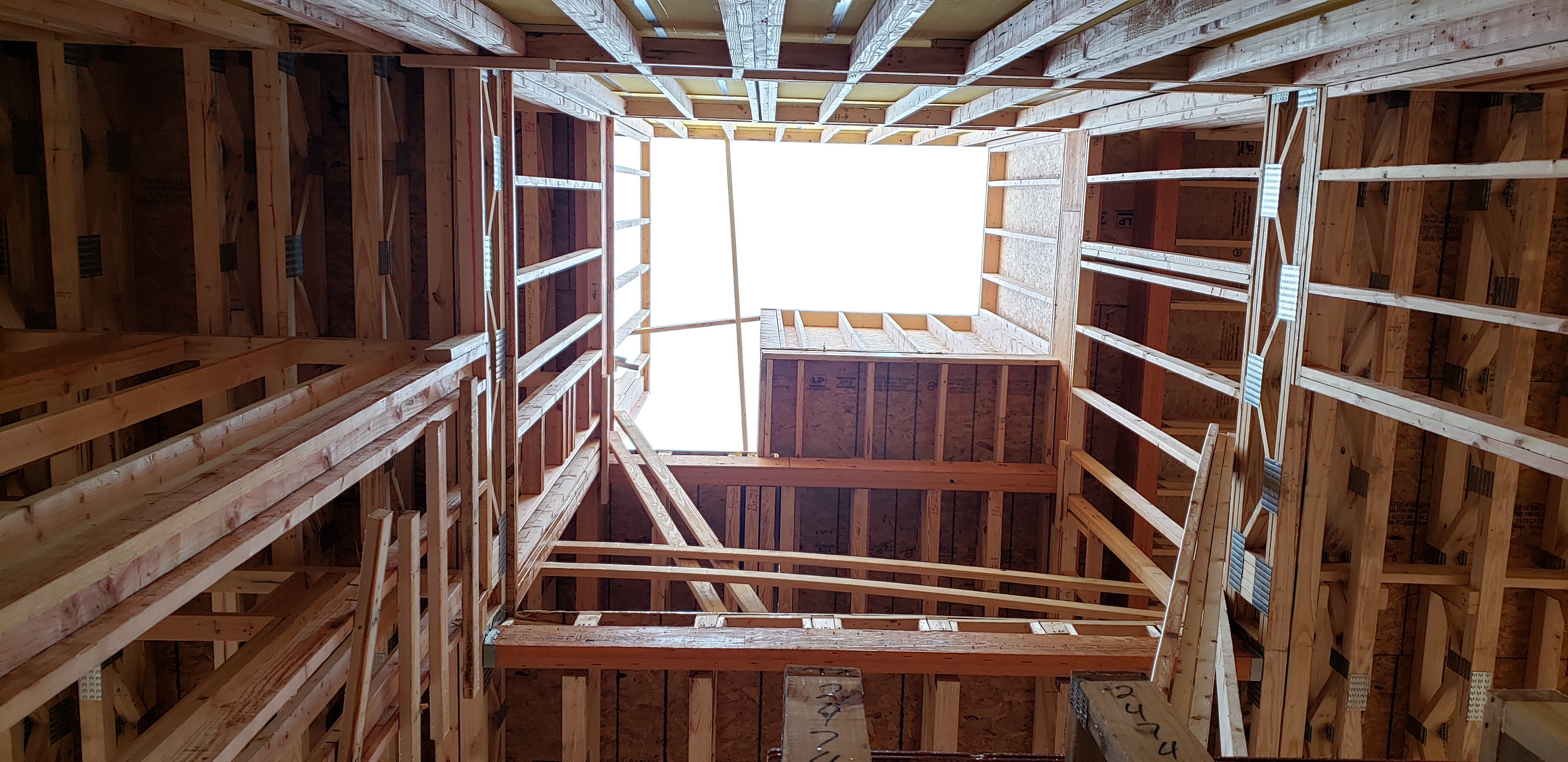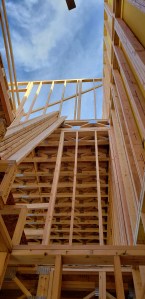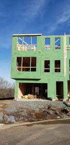 We met some neighbors who were out walking. They were keen to see the view from our house, so we invited them in and let them look out the windows. In turn, they invited us to see their home. It’s the same model as ours, but an interior unit, and I was eager to see the finished pantry, linen, and main bedroom closets.