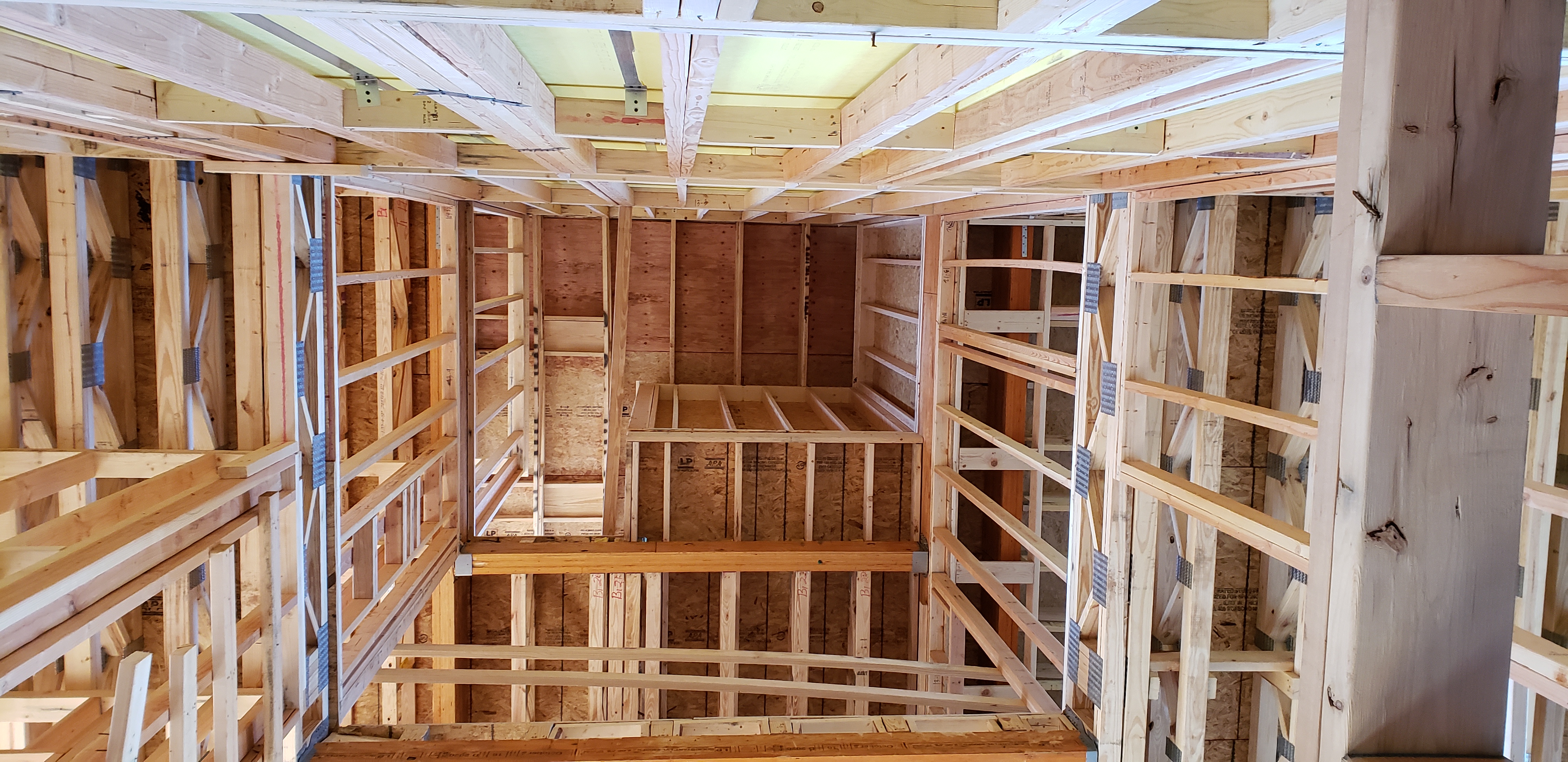 We met some neighbors who were out walking. They were keen to see the view from our house, so we invited them in and let them look out the windows. In turn, they invited us to see their home. It’s the same model as ours, but an interior unit, and I was eager to see the finished pantry, linen, and main bedroom closets.