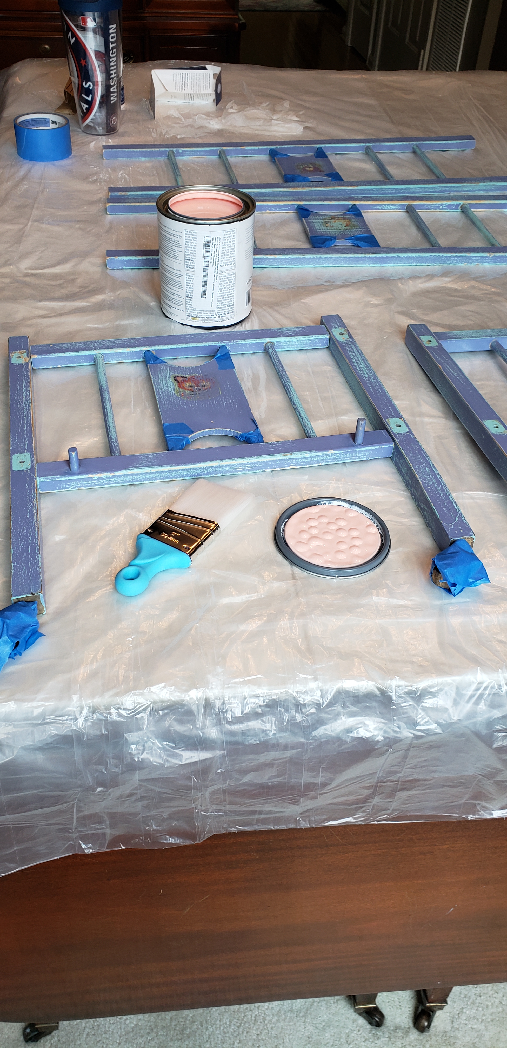 First, I took it completely apart and sanded it. Then I used wood glue to ensure it went back together properly before prepping it for paint.