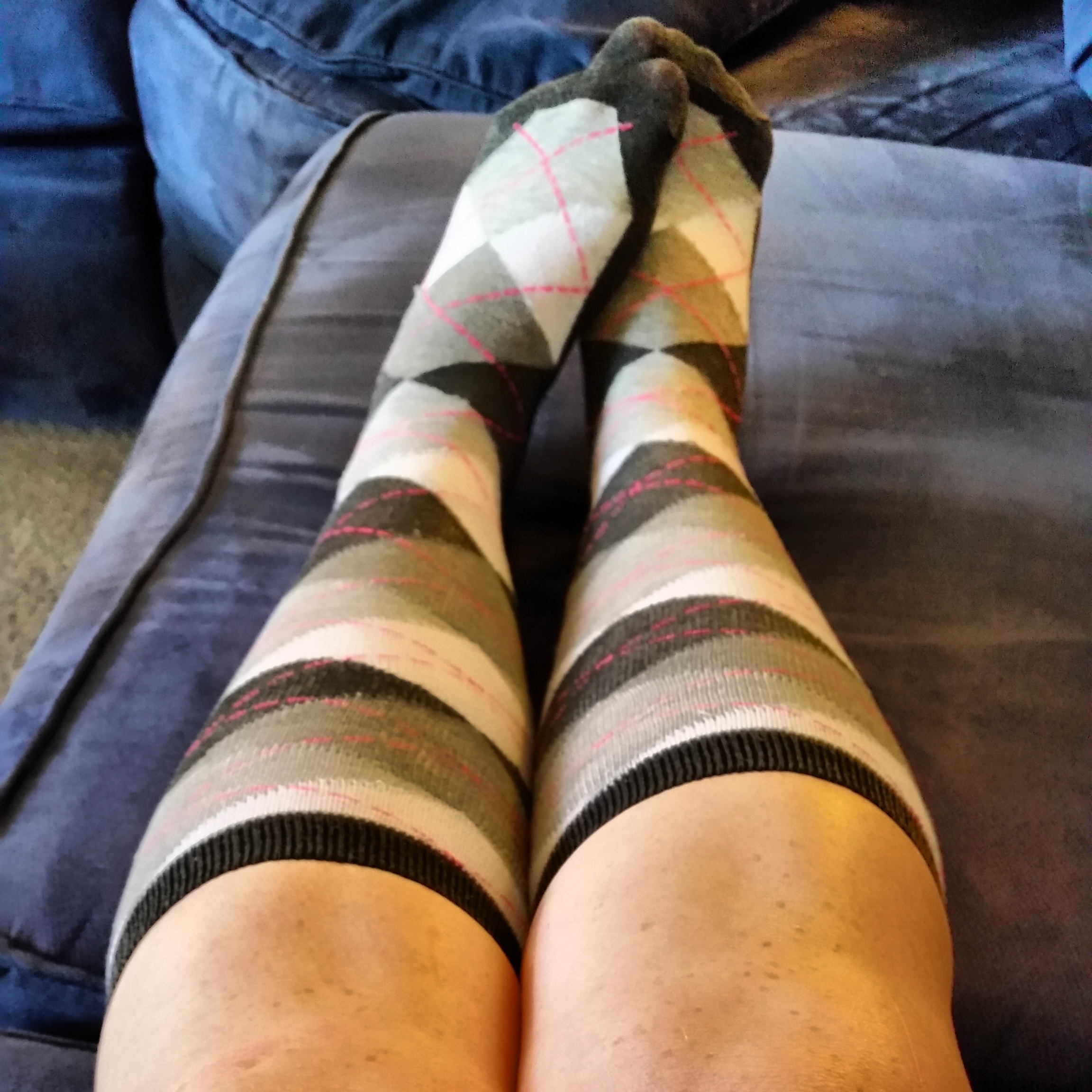 I have one “Cassie” skirt. The softest damn navy and gray striped little pencil skirt you ever did see. I have one pair of blue leggings to wear under one of my “Julia” dresses, if you fold it up a little, it becomes a tunic and the leggings are cute under it. I don’t foresee more leggings in my life…but who knows?