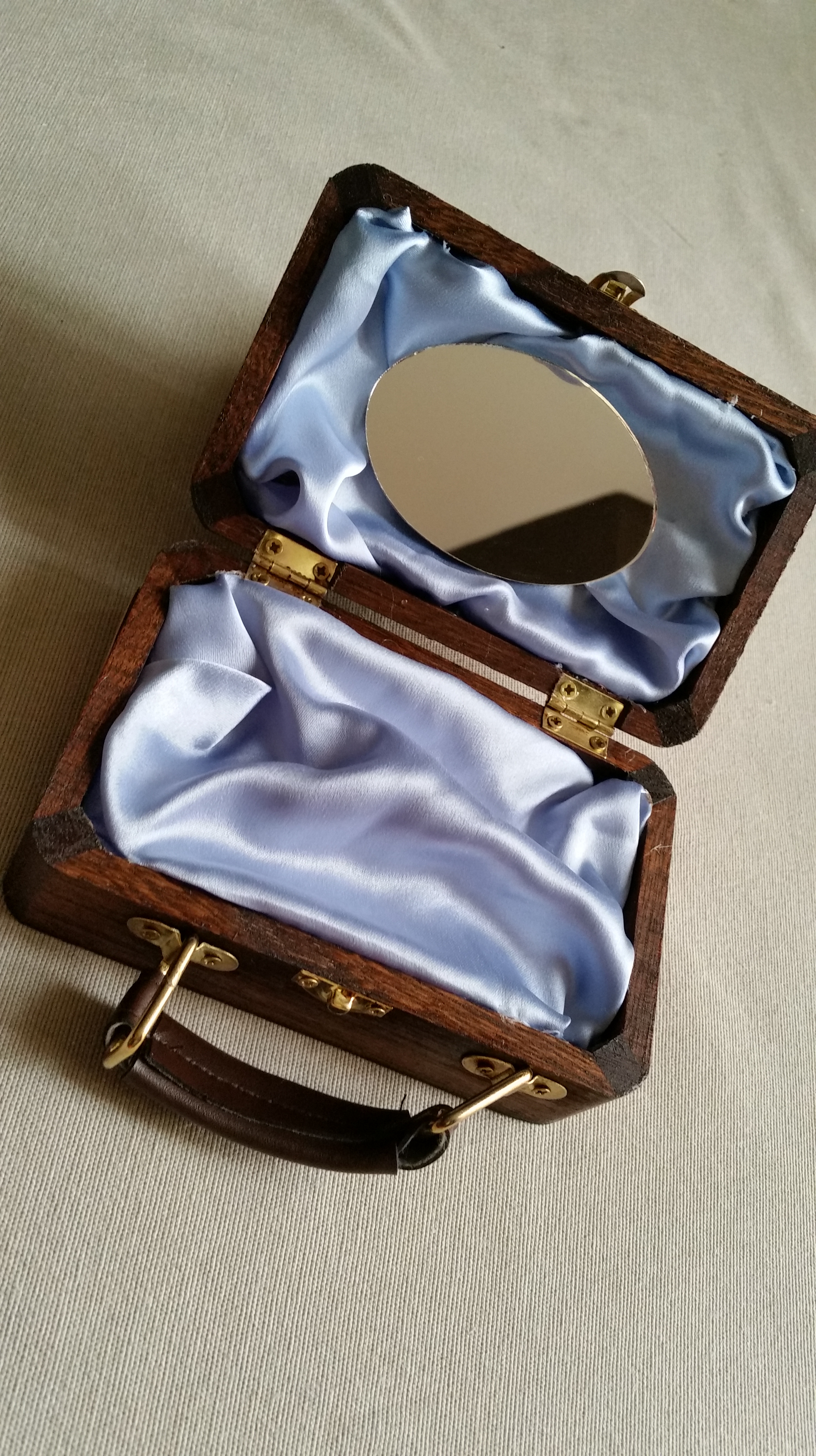 I have this item for her and wanted a special way to present it to her and nothing felt quite right. So I made a trip to the craft store and found the thing that sparked my idea for the way to present Thing 2’s special gift. A janky little balsa wood suitcase that with a bit of stain, antique travel and map stickers, and some mod podge became the perfect box for her gift!
