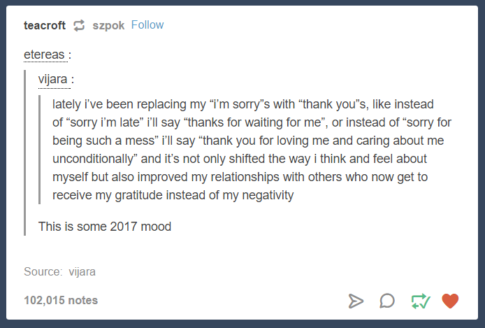 I have recently realized how often I apologize. I’ve become aware of it specifically in my lula transactions. If there’s confusion with a customer or another consultant, I begin my correspondence with ‘I’m sorry’ and have to stop myself.