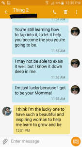 I’m grateful for the time off from school, the financial ability to do a weekend trip, and a new car that made the trip a breeze. I’m grateful for that sacred time with my Thing 2. I’m grateful for our open and honest communication, our ability to laugh at similar things. I’m grateful I’m her Momma and she’s my baby.