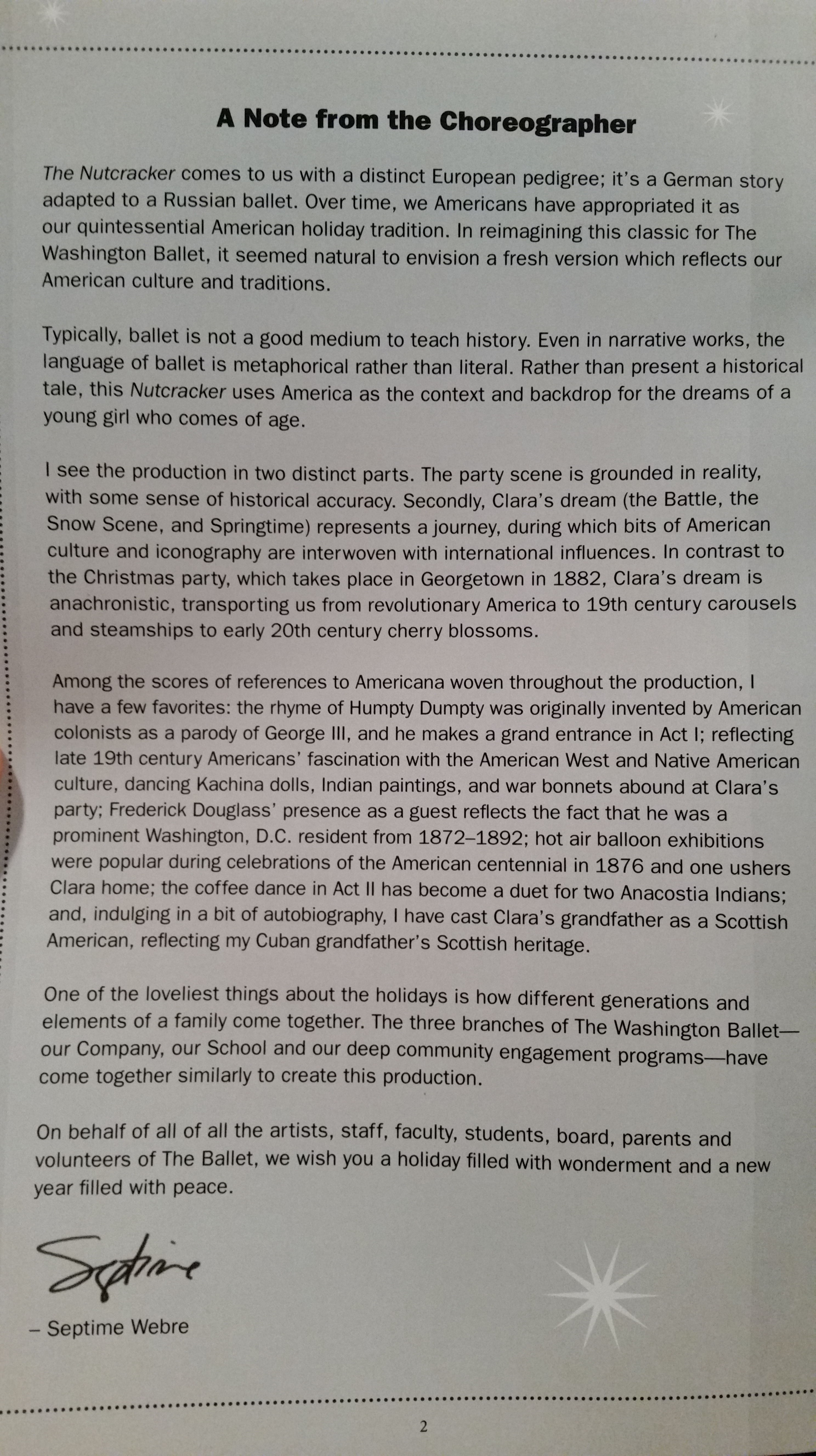 I love his American vision for The Nutcracker. George Washington as the Nutcracker was precious.